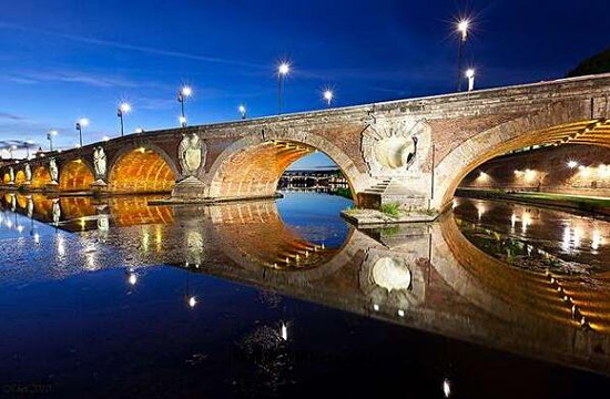 建于16世纪的图卢兹新桥是这座城市最古老、最美丽的桥梁建筑,建于1544年,竣工于1632年。图卢兹新桥长达220米,共有7个拱,在过去的400多年间,经历过多次洪水的新桥依旧屹立于此。新桥的两岸风景甚是怡人,左岸为高级酒店和公园,右岸为餐馆和突尼斯码头。