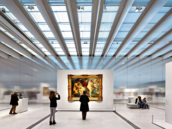 法国卢浮宫向来是欧洲必游景点,每年的参观人数都突破850万人次,为了疏散人潮,解决展览空间不足的问题,2003年,法国决定开设分馆,朗斯是一座拥有着200年矿业历史的工业城市,却出乎意料地当选。卢浮宫朗斯分馆(Louvre-Lens)由著名的日本“SANAA”建筑师事务所、美国英瑞-柯特伯以及法国景观建筑师凯瑟琳-莫斯巴赫联合设计,于2012年12月4日正式开馆。