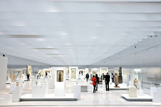 法国卢浮宫本就是一个百科全书式的博物馆,而朗斯分馆展示的展览品皆是从巴黎卢浮宫藏品中挑选出来的,并以中、长期为基准租借给卢浮宫朗斯分馆。中央大厅是整个场馆的中心,从中央大厅步入作为展厅,主展厅设置了艺术长廊和时间长廊,地下空间则每3个月进行一次主题展览。