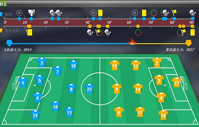 取得三球领先后的德国队迅速完成三次换人,斯洛伐克也有些无心恋战,两队都没有获得像样的机会。最终,德国队3-0完胜斯洛伐克晋级。